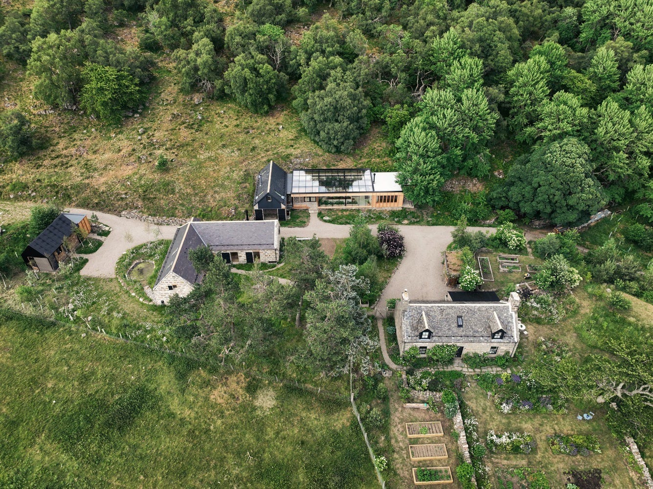 Built almost 170 years ago, a decade-long undertaking transformed a historic Aberdeenshire farmstead into a modern residence in Cairngorms National Park.