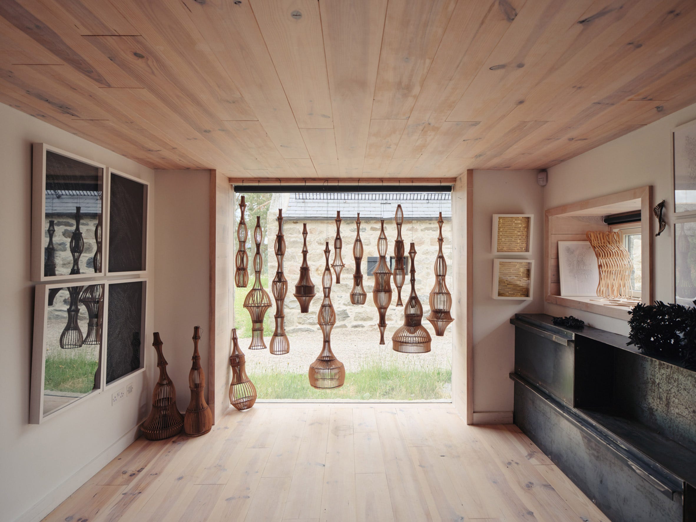 Attached to the glasshouse is the final component of the project: the artist’s studio. Repurposed for artist Naomi Mcintosh, and formerly used to winter sheep, the granite building was converted to be a full-service studio, complete with a kitchen, wet room, and storage.