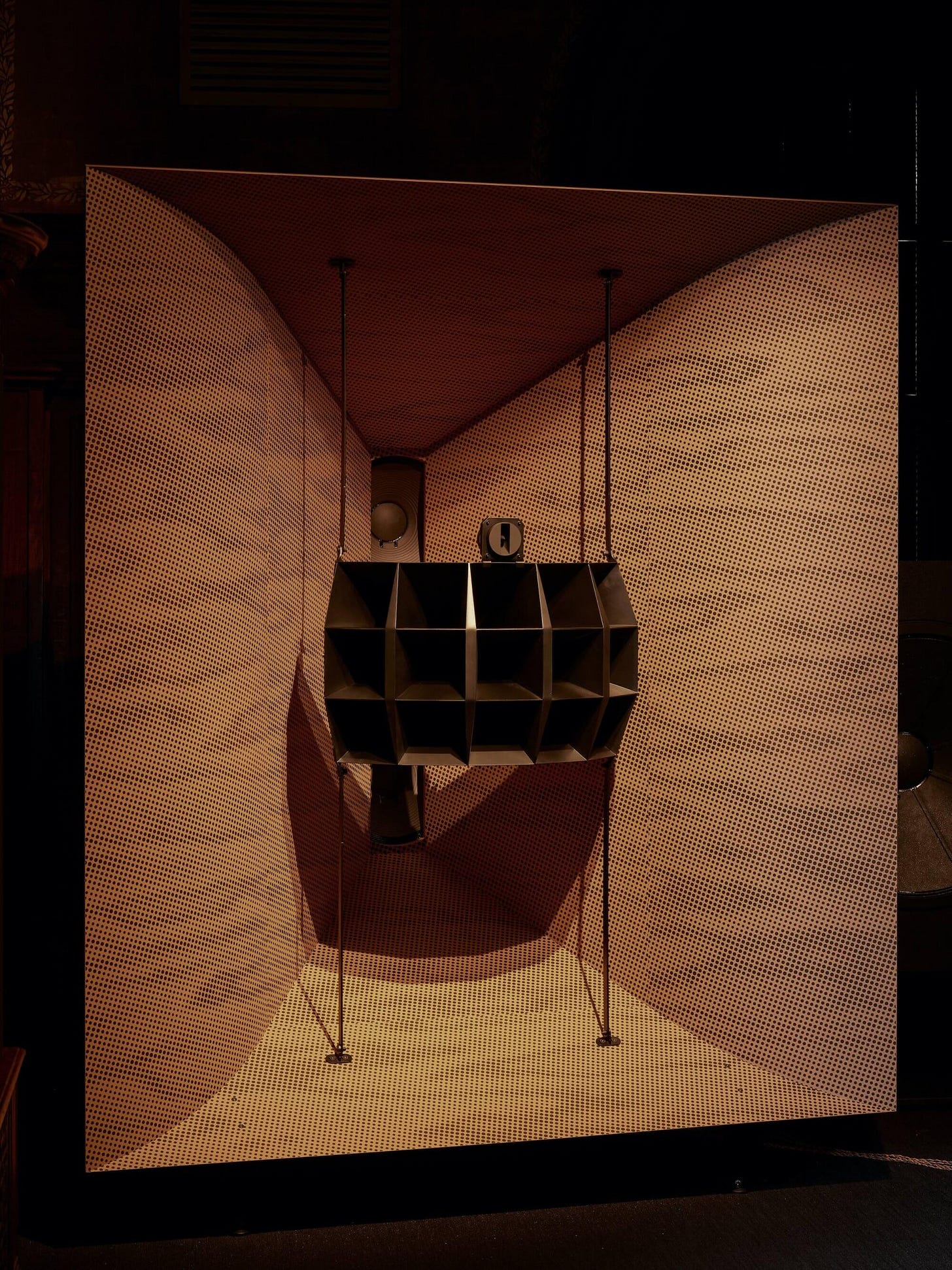 I was there for the opening of The Art of Noise, an exhibition exploring how design shapes the way we experience music. At its center is Devon Turnbull’s HiFi Pursuit Listening Room Dream No. 3, an immersive installation built directly into the historic library. Turnbull is known for his custom speaker systems and spatial sound work — previous installations for clients like Solange and projects like Public Records in Brooklyn have established him as someone who treats sound as architecture.